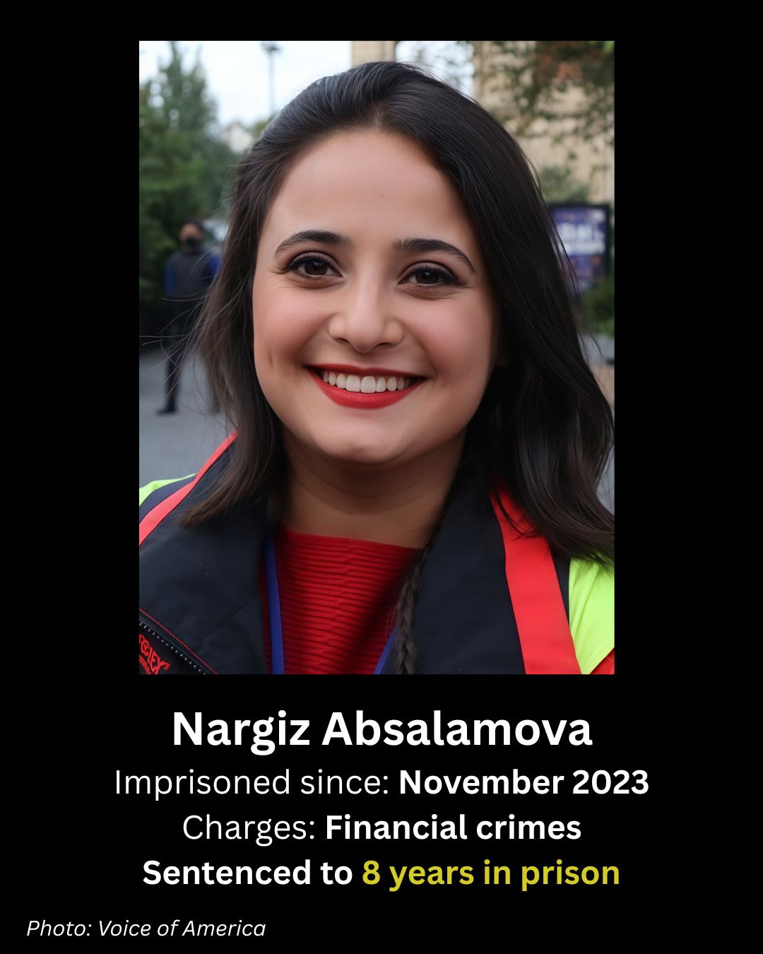 In June 2025, Abzas Media editor-in-chief Sevinc Vaqifqizi was sentenced to nine years in prison, and Abzas journalists Nargiz Absalamova and Elnara Gasimova were sentenced to eight years by the Baku Court of Serious Crimes on politically motivated charges of “foreign currency smuggling” alongside their colleagues.