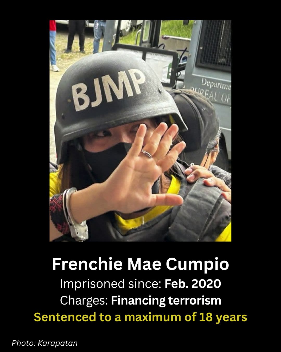 In the months prior to her arrest, Frenchie was a target of “red-tagging,” the practice of labeling individuals or organisations as communist sympathizers or terrorists without substantial evidence.