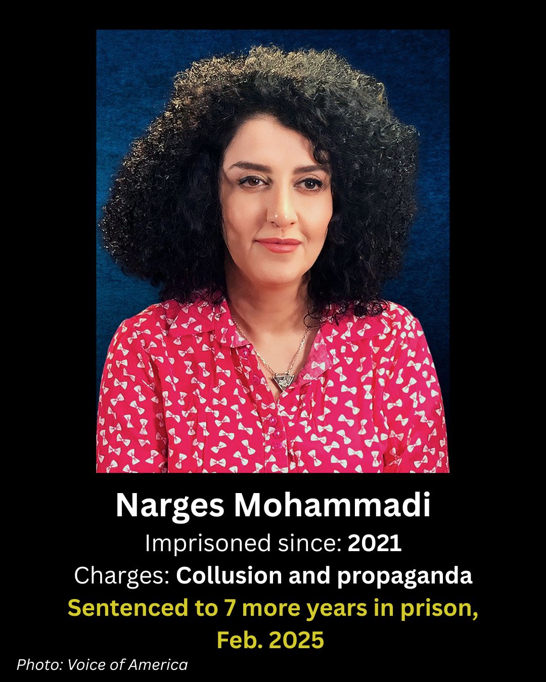 Nobel Peace Prize laureate Narges Mohammadi has been a target of judicial harassment by the Iranian regime for years, due to her unwavering commitment to free speech and free expression.